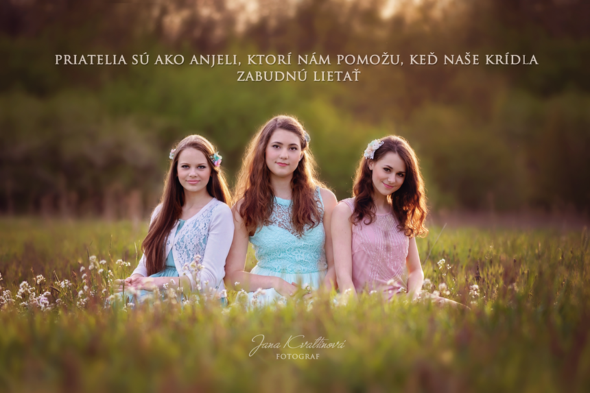 Tri priateľky, Hanka, Laura a Kika, tri krásne mladé slečny, ktoré dostali fotenie so mnou ako darček :-). Čo môže fotografa ako mňa potešiť viac, ako ten pocit, keď robím mojimi fotkami niekomu radosť :-). Vždy, keď píšem akýkoľvek nový príspevok, tak sa v mysli vraciam k tomu dňu, ktorý sme spoločne strávili fotením a vybavujú sa mi všetky milé a niekedy aj úsmevne spomienky :-). S babami sme strávili viac času ako obvykle, nakoľko som v tento deň plnila aj funkciu vizážistky :-). S Hankinou mamou sme spoločne pripravili fotenie, vyberali outfity, dievčatá som si namaľovala podľa predstáv, doladili sme vlásky, skrátka to bol taký dámsky deň, ktorý skončil pózovaním pred foťákom. Baby su hotové modelky, takže to bola radosť s nimi pracovať a myslím, že sa nám podaril krásny spoločný výsledok :-). A hreje ma ten pocit, že som mohla zachytiť jedno z ich krásnych období mladosti a urobiť radosť v podobe týchto milých fotiek.